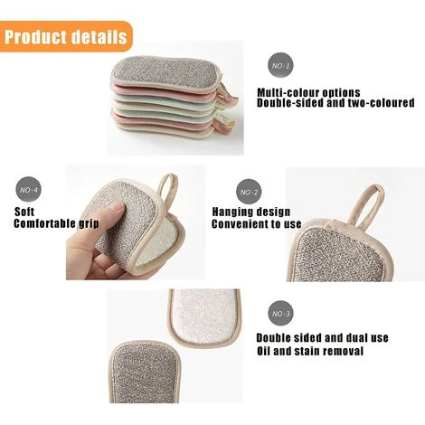Easy to clean: This dish sponge has a hanging strap on top for easy cleaning. easy drying and storage. Clean it after use, gently wring it out and then hang it up. It can quickly air dry. Helps you keep your kitchen clean and tidy. It is clean and hygienic and can be used repeatedly.