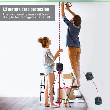 【HOHE SICHTBARKEIT UND PRÄZISION】 Dank der leistungsstarken Laserdiode sind die Laserlinien extrem gut sichtbar und projizieren Sie leicht ein leuchtend rotes Kreuz in einem Winkel von 110 °. Genauigkeit der horizontalen Linie: ± 2 mm / 10 m (Radius). Genauigkeit der vertikalen Linie: ± 2 mm / 5 m (Radius). Reichweite: 15 Meter.