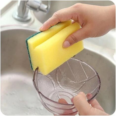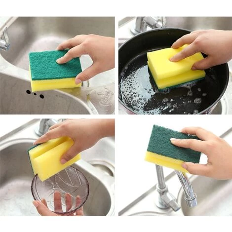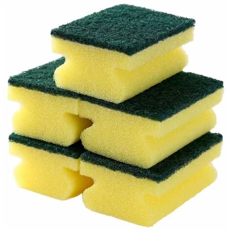 Hergestellt aus Schwamm + Vliesstoff, doppelseitig verwendbar, 5 Stück, kann zum Spülen von Geschirr, Bürsten von Töpfen, Reinigen von Pfannen usw. verwendet werden. I-förmiges Design, leicht zu nehmen, ist ein guter Helfer für Ihre Küche