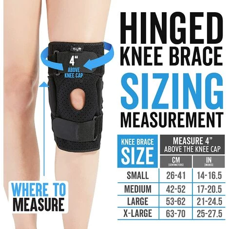 Mit zwei abnehmbaren Stützscharnieren – Eine aufklappbare Kniestütze für Männer und Frauen mit beidseitigen Aluminiumscharnieren und einer gepolsterten Stütze, die eine hohe Unterstützungsniveau bei alten Verletzungen, beschädigtes Knie, um Überstreckung zu verhindern, funktioniert auch ohne Knieschmerzen, da es das Knie vor weiteren Verletzungen schützt, ohne die Beweglichkeit einzuschränken.
