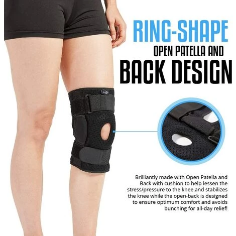 Offenes Design an der Vorder- und Rückseite der Kniescheibe : Eine ausgezeichnete MCL-Knieorthese sollte vorne und hinten an der Kniescheibe offen und mit einem Polster versehen sein, um die Belastung / den Druck auf das Knie zu reduzieren. Es sorgt auch für die richtige Ausrichtung der Kniescheibe und stabilisiert das Knie, während der offene Teil am Rücken für optimalen Komfort sorgt und Faltenbildung für den ganzen Tag verhindert.