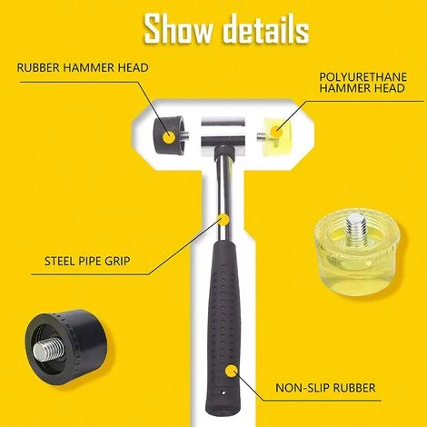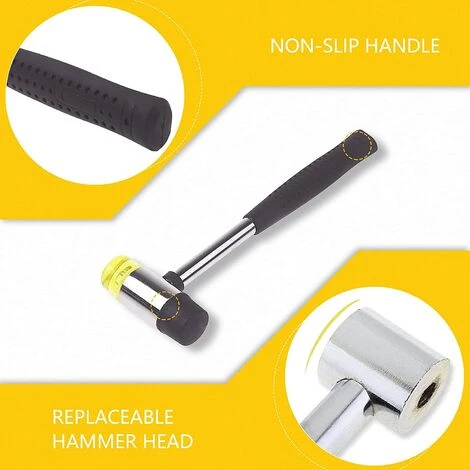 Einfach zu bedienen: Der flexible Gummihammerkopf kann bewegt und ersetzt werden, und es hat auch einen rutschfesten Gummigriff, der sicher und bequem zu verwenden ist.