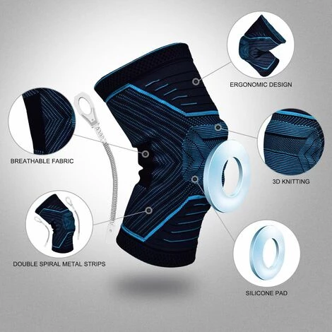 Stabilität Leicht: Die Gel-Kompressionsknieorthese ist mit zwei abgeflachten Federn auf jeder Seite konstruiert, um dem Kniegelenk leichte Stabilität zu verleihen. Die flexiblen Metallfedern auf beiden Seiten können die Unterstützung verstärken und die Aufprallenergie der Bewegung absorbieren. Es macht das Knie effizienter.