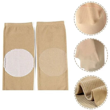 Nahtlos gestrickte Knieschützer für ganztägigen Komfort und doppelt genähtes Gummiband für Rutschfestigkeit. Einfaches An- und Ausziehen in Sekundenschnelle ohne Probleme