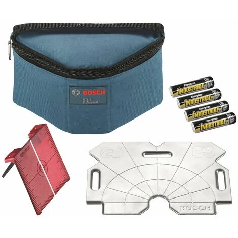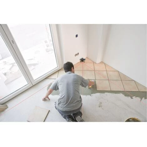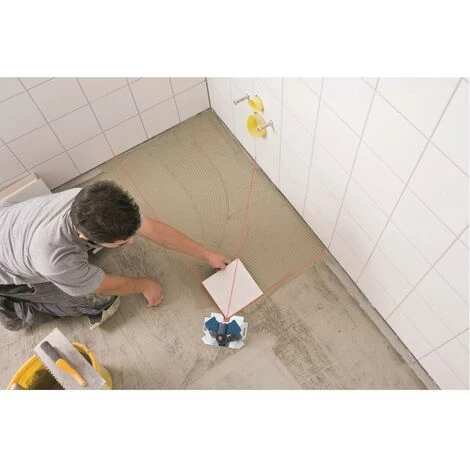 Fliesenlaser GTL 3. Schnelles Fliesenlegen durch zusätzliche Linie bei 45 Grad. Projiziert zusätzlich zu den beiden Laserlinien im Winkel von 90 Grad eine dritte Linie bei 45 Grad für präzises und schnelles Ausrichten und Legen von Wand- und Bodenfliesen. Hohe Genauigkeit von 0.2 mm/m. Kompaktes und leichtes Design für optimale Bedienbarkeit. Ausrichtplatte für bessere Stabilität bei der Arbeit auf unebenem Boden und zum Befestigen an der Wand. Gut sichtbare Laserlinien für den Inneneinsatz. Staub- und spritzwassergeschützt (IP 54). Automatische Ausschaltung zur Reduktion des Batterieverbrauchs. Ausrichtscheibe. Laserzieltafel. Schutztasche. 4 x 1.5 V-LR6-Batterie (AA).