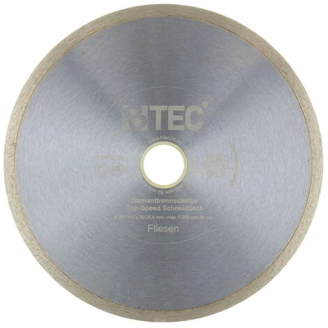 Diamanttrenscheibe für Fliesen, Feinsteinzeug, Granit usw. speziell für Fliesenschneidmaschinen mit geschlossenem Schneidrand für saubere und schnelle Schnitte. Eine große Diamantdichte in der Bindung sorgt für eine hohe Standzeit des Werkzeuges.