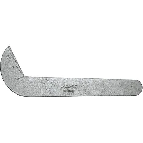 Aus Stahl, Messflächen geschliffen, mit mm-Teilung. Zum Prüfen des Anschliffs auf richtigen Spitzenwinkel und Mitte.