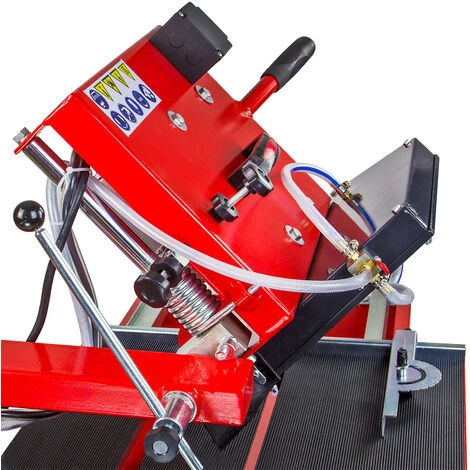 Eine professionelle Trennsäge mit stufenlos senkbarem und schwenkbarem Kopf zum Schneiden von Baustoffen wie z. B. Betonsteinpflaster, Betonplatten, Klinker, Bordsteine, Randsteine, Fliesen, Dachziegel, Waschbetonplatten, Granit, Marmor, Poroton usw. Durch die hochwertige Ausführung der Diamant-Trennscheibe können Sie mit dem Nassschneidetisch ein breites Spektrum an abrasiven Werkstoffen bearbeiten. Die massive klappbare Unterkonstruktion sorgt für einen sehr stabilen Stand und einfachen Transport. Ein auf hochwertigen Kugellager gelagerte Schubtisch ermöglicht sehr genaue Schnittarbeiten. Auch Gehrungsschnitte sind kein Problem.
