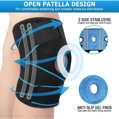 Professionelles Multi-Schutz-Design – doppeltes rutschfestes Silikon, verdoppelt die Wirkung von Kompression und Rückprall, schützt die Kniescheibe, beugt Zerrungen und Verstauchungen vor. Zwei seitliche Stabilisatoren stützen und stabilisieren das verletzte Knie bei professionellen sportlichen Aktivitäten.Reduzieren Sie Steifheit und Muskelkater und stellen Sie die Vitalität von Arthritis, Osteoporose, Sehnenentzündung und anderen unangenehmen Situationen wieder her.