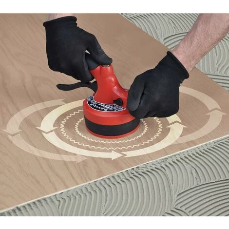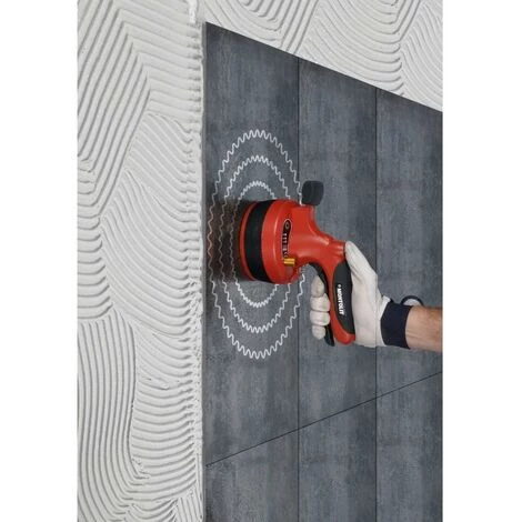 Dieser Saugnapf arbeitet mit einstellbaren Mikrovibrationen, die die Verteilung des Klebers unter der Fliesenoberfläche erleichtern und sehr gefährliche Luftblasen vermeiden.