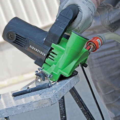 - Integrierte Wasserzuführung mit Durchflussregler – Feineinstellung der Wassermenge und staubfreies Arbeiten im Nassverfahren