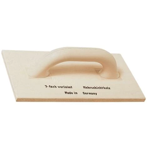 Mehrschichtholzplatte mit Kunststoffgriff . kalkbeständig . geringer Verschleiß . ca. 12 – 15 mm stark .