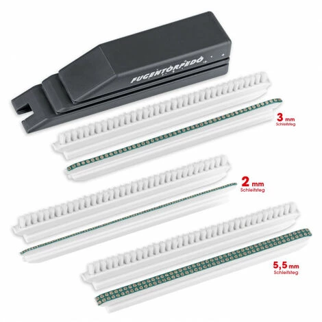Den Schleifsteg in die Fuge setzen. Dann %0d%0amit LEICHTEM DRUCK vor- und zurückschieben. Der Schmutz wird dadurch %0d%0aabgetragen. Alle zu reinigenden Fugen einmalig auf diese Weise %0d%0avorbehandeln. Hinweis: Weitere Schleifstegbreiten im Fachhandel oder %0d%0aonline erhältlich.