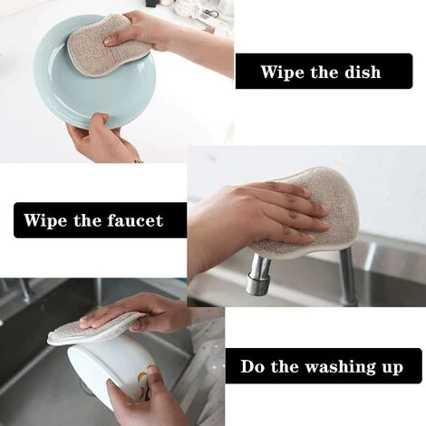 É Geschirr doppelseitig, einseitig ist die Seite langlebig und der andere ist der weiche Mikrofaserschwamm, perfekt für Teller, Töpfe, Pfannen, Schüsseln, Gläser, Küchenarbeitsplatten, Kühlschrank, Schränke, Töpfe usw.