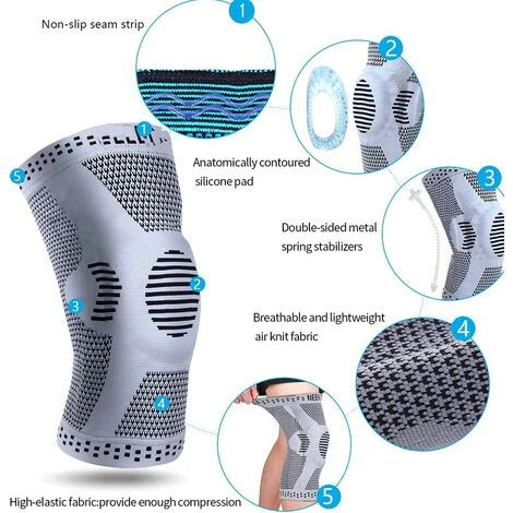 INNOVATIVE TECHNOLOGIE — Hochelastisches Kompressionsgewebe hält die Knie warm und reduziert Steifheit, reduziert Entzündungen und Schwellungen und erhöht den Sauerstofffluss. Diese Knieorthese verteilt den Druck und verbessert die Durchblutung im Kniebereich. Sie umschließt die Kniescheibe, um die Stabilität der Kniescheibe zu erhöhen und die Sehnen zu entspannen, wodurch ein Ziehen und Muskelverspannungen vermieden werden. Als solches beugt es potenziellen Sportverletzungen vor, ohne Ihre Leistung zu beeinträchtigen, und eignet sich hervorragend zur Schmerzlinderung und Genesung!