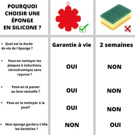Der spülmaschinenwaschbare Schwamm ist dank der Silikonnoppen ein vielseitig einsetzbares Haushaltsreinigungswerkzeug: weiche Noppen für Glas und Besteck, harte Noppen zum Abkratzen von hartnäckigem Schmutz.