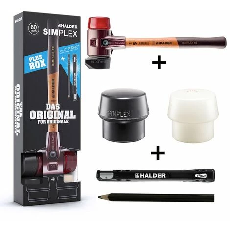 Neben dem bewährten SIMPLEX-Schonhammer enthält das jeweilige Set Ersatzeinsätze und einen PICA-Stifthalter inkl. Zimmermannsbleistift.