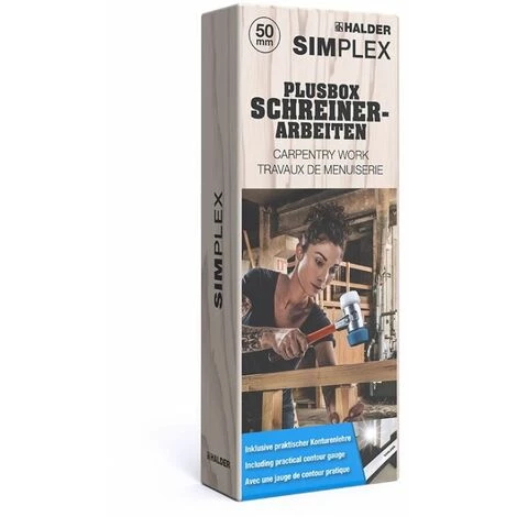 Die PLUSBOX SCHREINERARBEITEN enthält den „Schreinerhammer“ von HALDER und als Beigabe eine Konturenlehre: