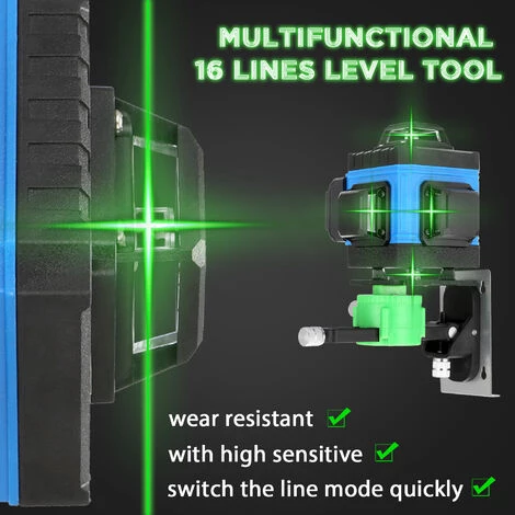 Dies ist eine Art feines Qualitätsniveauinstrument, 4D 16 Linien für eine feinere Positionierung, mit selbstnivellierendem System, Flexibilität und Stabilität. Mit vertikalen und horizontalen Laserlinien, bequem zu bedienen. Es ist perfekt für eine Vielzahl von Anwendungen, einschließlich Bodenbelag, Fliesenlayout, Verkleidung, Tapezieren, Schablonieren, Vertäfeln, Fertigtischlerarbeiten, Steckdosen- und Schalterlayout, Wandständerlayout und Trennwandinstallation. Sie können es versuchen.