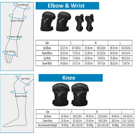 Kombiniert mit 2 x Ellbogenschützern, 2 x Knieschützern, 2 x Handgelenkschützern.