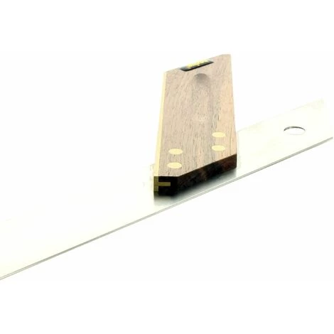 Der Schenkel ist aus hochwertigem Nussbaumholz gefertigt und mit einem Messingprofil am Innenschenkel beschlagen. Durch die beidseitige Griffhohlkehle liegt der Winkel stets gut in der Hand.