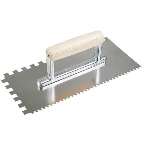 Lieferung: Hufa Buttering-Floating Kelle mit Naturholzgriff 280 x 130mm mit 4x4mm und 10x10mm Zahnung
