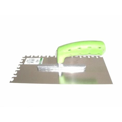Zahnung: zweiseitig, Holo Top = zum hohlraumlosen verlegen von Fliesen, Platten, Mosaik etc, Blattgröße: 280mmx130mm,hochwertiger Edelstahl, rostfrei, 4-Punkt-Rippenschweißung, 2-Komponenten-Softgriff, gummierte, ergonomische Form für ermüdungsfreies Arbeiten, kontrollierte Spitzenqualität, Made in Germany, VPA-GS geprüft.