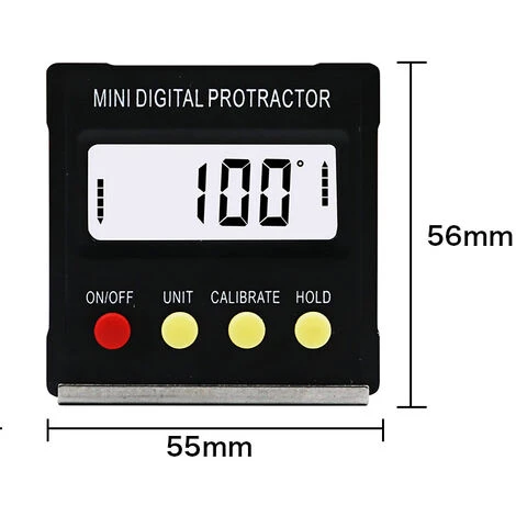 Der Neigungsmesser ist ein brandneues innovatives Winkel- und Niveaumessgerät mit großem LCD-Display und einfacher Ablesung. Kleine Größe, geringes Gewicht, einfach zu tragen und zu verwenden. Die Messfläche enthält eine starke Magnetfolie zur Aufnahme der Messfläche. Es ist besonders praktisch, verschiedene Winkel zu messen, wie z.