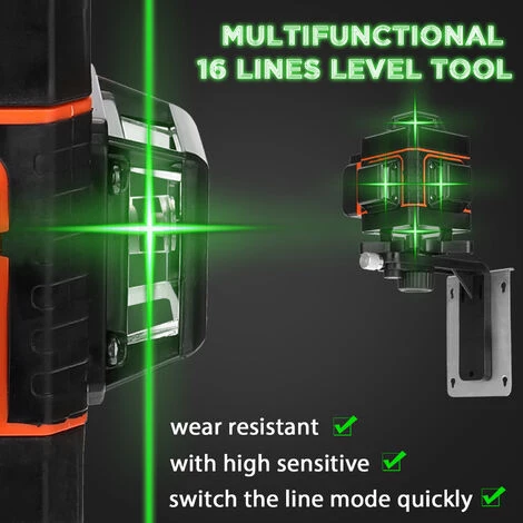 Dies ist eine Art Instrument mit feiner Qualität, 4D 16 Linien für eine feinere Positionierung, mit selbstnivellierendem System, Flexibilität und Stabilität. Mit vertikalen und horizontalen Laserlinien bequem zu bedienen. Es ist perfekt für eine Vielzahl von Anwendungen geeignet, einschließlich Bodenbelag, Fliesenlayout, Verkleidung, Tapeten, Schablonieren, Vertäfelung, Fertigschreinerei, Wandpfostenlayout und Trennwandinstallation. Sie können es versuchen.