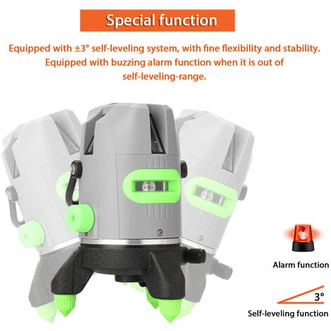 Dies ist eine Art Instrument mit feiner Qualitat, ausgestattet mit einem 3 ° Selbstnivellierungssystem, mit feiner Flexibilitat und Stabilitat. Es ist perfekt fur eine Vielzahl von Anwendungen geeignet, einschlieBlich Bodenbelag, Fliesenlayout, Verkleidung, Tapezieren, Schablonieren, Vertafelung, Fertigschreinerei, Schalterlayout, Wandpfostenlayout und Trennwandinstallation. Sie konnen es versuchen.