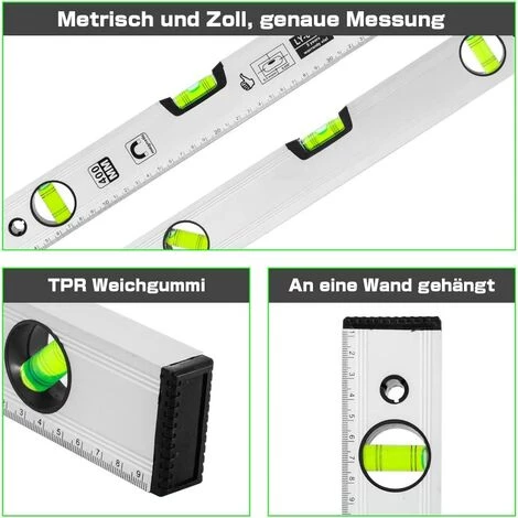 Genaue Messung – Das Metallgehäuse erhöht die Genauigkeit und Präzision des Fläschchens auf +/- 0,75 mm. 400 mm lang und skalierbar, um alle Ecken einfach messen zu können. Wasserwaagen sind ideal für Trockenbau, Innenausbau, Camping, Handwerker und Elektriker, Schalter für Steckdosenmarkierungen, Einbaukästen und Schrauben.