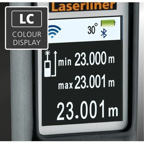 Der punktgenaue Laser-Entfernungsmesser ist ideal zum Erfassen von Längen, Flächen und Volumen, beispielsweise bei dem Ermitteln von Raumgrößen und Kalkulieren von Materialmengen. Per 360°-Neigungssensor lässt sich waagerechte und senkrechte Distanz bestimmen. Das Gerät verfügt über umschaltbare Messebenen, ein beleuchtetes, dreizeiliges Display und ein ergonomisches Gehäuse mit Schutzgummierung. Über die Bluetooth-Schnittstelle können die Messdaten einfach auf das Smartphone übertragen werden.