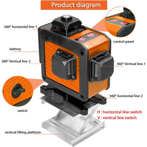 „Dies ist eine Art hochwertiges Instrument, 16 Linien für eine feinere Positionierung, mit 3°-Selbstnivellierungssystem, Flexibilität und Stabilität. Mit vertikalen und horizontalen Laserlinien, bequem zu bedienen. Es ist perfekt für eine Vielzahl von Anwendungen, einschließlich Fußböden , Fliesenverlegung, Vertäfelung, Tapezieren, Schablonieren, Vertäfelung, Tischlerei fertigstellen, Steckdosen- und Schalterverlegung, Wandpfostenverlegung und Trennwandmontage. Probieren Sie es aus.