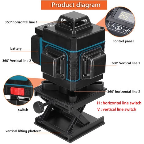 „Dies ist eine Art hochwertiges Instrument, 16 Linien für eine feinere Positionierung, mit 3°-Selbstnivellierungssystem, Flexibilität und Stabilität. Mit vertikalen und horizontalen Laserlinien, bequem zu bedienen. Es ist perfekt für eine Vielzahl von Anwendungen, einschließlich Fußböden , Fliesenverlegung, Vertäfelung, Tapezieren, Schablonieren, Vertäfelung, Tischlerei fertigstellen, Steckdosen- und Schalterverlegung, Wandpfostenverlegung und Trennwandmontage. Probieren Sie es aus.