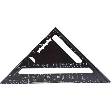 Technische Daten: Typ (optional): metrisches System, imperiales System Material: Aluminiumlegierung. Schwarze Farbe. Abmessungen: ca. 26 x 18,6 x 18,5 cm / 10,24 x 7,32 x 7,28 Gewicht: ca. 232 G Lieferumfang: 1 x Winkelmesserdreieck