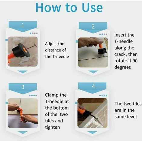 - Verbesserung der Effizienz: Der Fliesen-Nivellierer kann die Fliesenverlegegeschwindigkeit verbessern und Ermüdung/Stress des Installateurs verringern. Das Fliesen-Nivellierungssystem garantiert die Ebenheit zwischen den Fliesen und vermeidet Unebenheiten. Es löst die Frage nach Bodenrissen und sorgt für einen ebenen Boden.