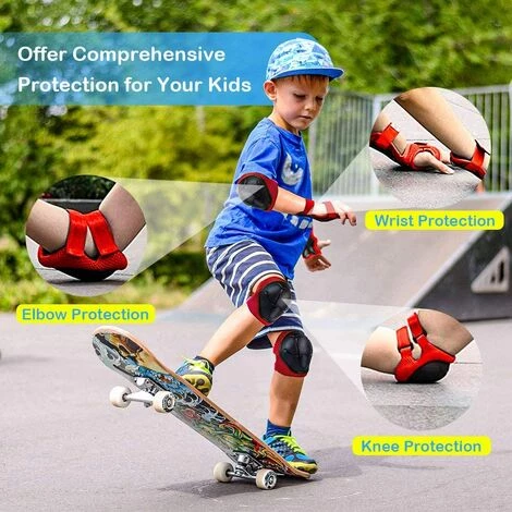 【6 in 1 Kinderschutzausrüstung】 Das Kinder-Knieschützer-Set enthält ein Paar Handgelenkschützer, ein Paar Ellbogenschützer und ein Paar Knieschützer, die Kindern bei einer Vielzahl von sportlichen Aktivitäten vollen Schutz bieten. Einheitsgröße, empfohlen für Kinder von 3 bis 8 Jahren.