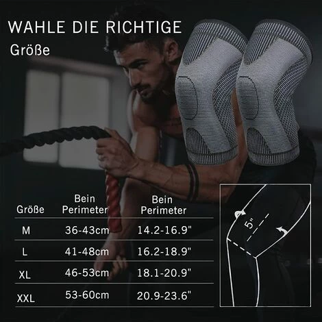 Rutschfestes Design: Sportband, unsere Knieschützer bieten stabilen Halt, auch wenn andere Kniekompressionsmanschetten rutschen. Unsichtbare, einteilige, doppellagige, rutschfeste Silikonrillen auf der Oberseite und hochelastisches Material an den Rändern sorgen für ausreichenden Halt.