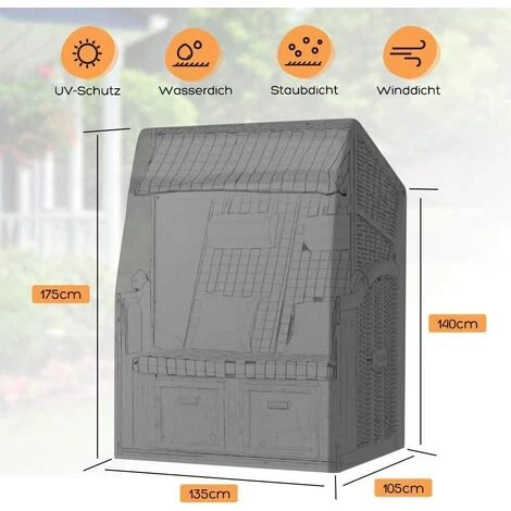 LANGLEBIGES MATERIAL: Die Strandkorbabdeckung besteht aus 420D-Nylon-Oxford-Gewebe mit hoher Dichte, das wetterfest und staubdicht ist. Dank des innovativen Designs des dreilagigen Gewebes ist das Gewebe alterungs-, licht- und alterungsbeständig