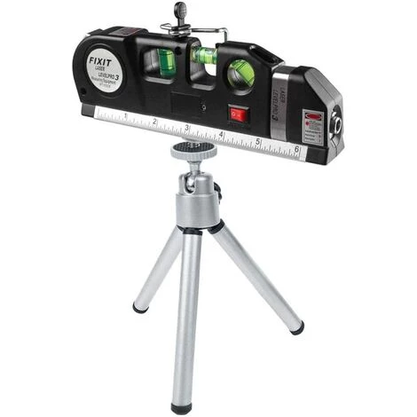 - Kombinierter Lasernivellier: Beinhaltet Laser, Maßband, vertikale und horizontale Libellen und einziehbares Metallstativ.