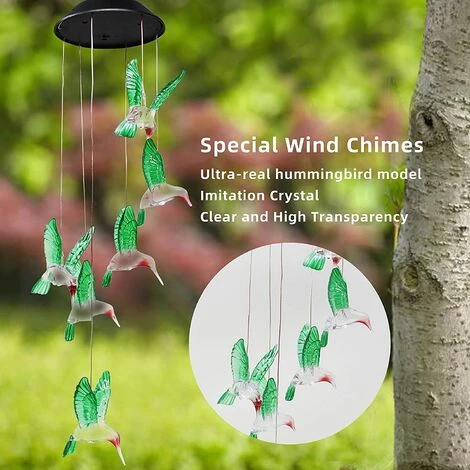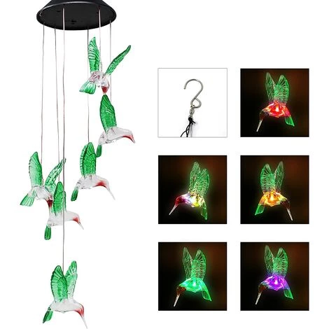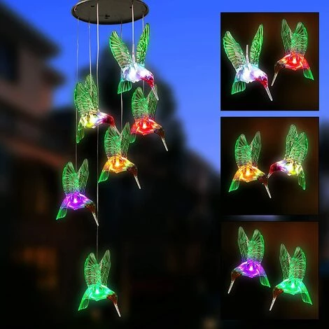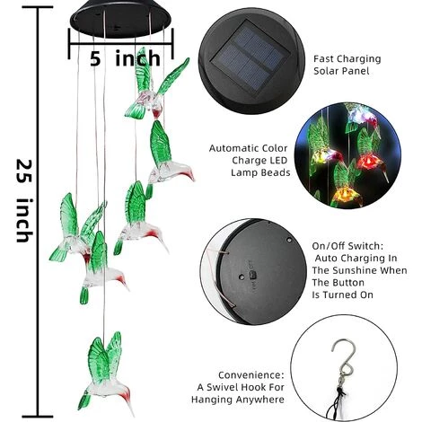 Packung mit 2 farbwechselnden Solar-Windspielen, dekorative hängende Gartenleuchten für draußen, Weihnachtsgeschenke für Dekoration, Haus, Garten, Terrasse, drinnen und draußen. Das Windspiel verfügt über ein Kolibri-Design mit Farbwechsel. Es wird Ihrer Familie eine warme Weihnachtsatmosphäre für eine fröhliche Atmosphäre im Freien bringen. Es kommt mit 2 Packungen.
