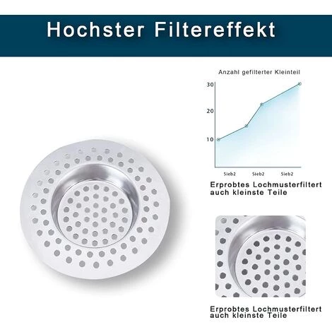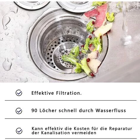 Vielfältige Einsatzmöglichkeiten: Waschbeckensiebe sind für die meisten Abflussrohre in Waschbecken, Badezimmern und Duschen geeignet. Verhindern Sie, dass Lebensmittel und Haare die Küche und das Badezimmer verstopfen.