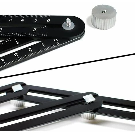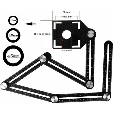 - GEBAUT MIT FLIESEN-LOCHLOCATOR: Es handelt sich um ein Messwerkzeug mit mehreren Winkeln, das mit einem Fliesen-Loch-Finder ausgestattet ist. Es ist ein nützliches Design für Benutzer, um die Position zum Bohren des richtigen Lochs zu finden. Und das Architektenlineal mit 6 Seitenfaltung, das flexibel, verschiebbar und abnehmbar ist. Erstellen und messen Sie ganz einfach spezielle Winkel oder Formen, die Sie benötigen, mit dem Winkelsuchwerkzeug, um Ihre Arbeitseffizienz zu verbessern.