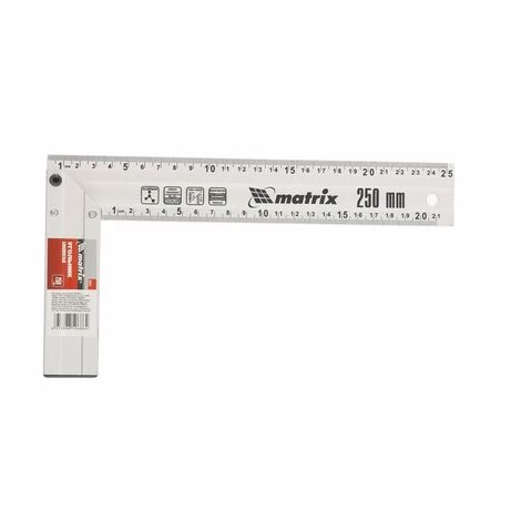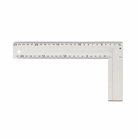 Es sorgt für eine zuverlässiges Messen von rechten Winkeln und verfügt über ein 25-cm-Lineal.