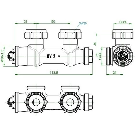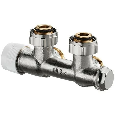 Anschlussarmatur mit Voreinstellung, Absperrung und Entleerung, aus Messing, weichdichtend, vernickelt, Installation unabhängig von der Vor- bzw. Rücklauflage