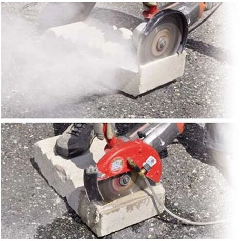 Patentiertes System, ideal für die Staubreduzierung, für alle handelsüblichen Winkelschleifer. Das System verwandelt einen normalen Winkelschleifer in eine professionelle, wassergekühlte Säge. Garantiert eine lange Lebensdauer des Diamant-Werkzeugs. Erhöht die Geschwindigkeit und das Finish des Schnittes und reduziert drastisch Schäden, die durch wiederholte Exposition gegenüber Keramikstaub und Schmutz verursacht werden. Verfügbar für Modelle mit 115mm, 125mm und 230mm Diamantscheiben-Ø sowie 180mm Doppel-Scheiben zur Herstellung von Nuten.