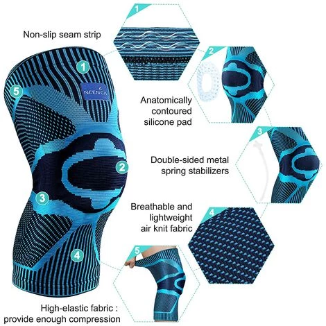Exklusives Patent: eine gefederte Kniebandage-Technologie: Ein anatomisches Gel-Kniepolster umschließt die Kniescheibe, die doppelseitigen Metallfederstabilisatoren passen sich perfekt an Ihr Kniegelenk an. Diese Funktionselemente Pads stärken den seitlichen Halt und erhalten die Gelenkstabilität. Es verteilt effektiv den Druck, hält Ihr Knie warm und schmiert Ihre Gelenke.