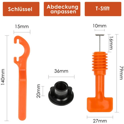 【Einfach für den DIY-Betrieb zu verwenden】Das Fliesennivellierungssystem ist wiederverwendbar.Es war leicht genug, es mit einem speziellen Schraubenschlüssel zu befestigen oder zu entfernen, der die Verlegegeschwindigkeit der Fliesen verbessern kann.Hervorragend geeignet, um zu verhindern, dass sich Fliesen während des Aushärtens bewegen.