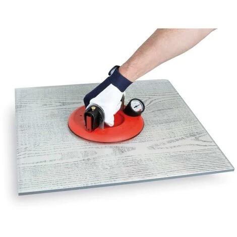 Großer Saugnapf (Ø 20 cm), ausgestattet mit einer „Vakuum“ -Sicherheitsanzeige, die sofort jeden Haftungsverlust mit der Fliese zeigt.