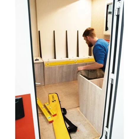 - Wasserwaagen 120 cm und 60 cm mit zwei Vertikal-Libellen für schnelles Ablesen in jeder Position.
